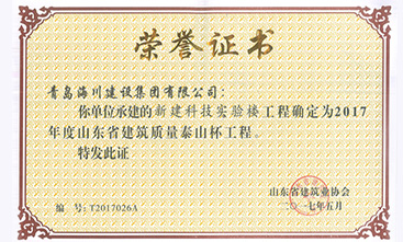 海川集團農(nóng)業(yè)大學(xué)科技樓項目榮獲山東省泰山杯2017-05-31海川集團七分公司承建的農(nóng)業(yè)大學(xué)科技樓項目近日榮獲山東省建筑工程質(zhì)量最高獎—“泰山杯”。今年4月,山東省“泰山杯”驗收專家組一行4人在市建筑業(yè)協(xié)會負(fù)責(zé)人的陪同下,對我單位申報“泰山杯”的青島農(nóng)業(yè)大學(xué)科技實驗樓進(jìn)行了驗收。青島農(nóng)業(yè)大學(xué)科技實驗樓工程用于科技實驗室和公共平臺實... -