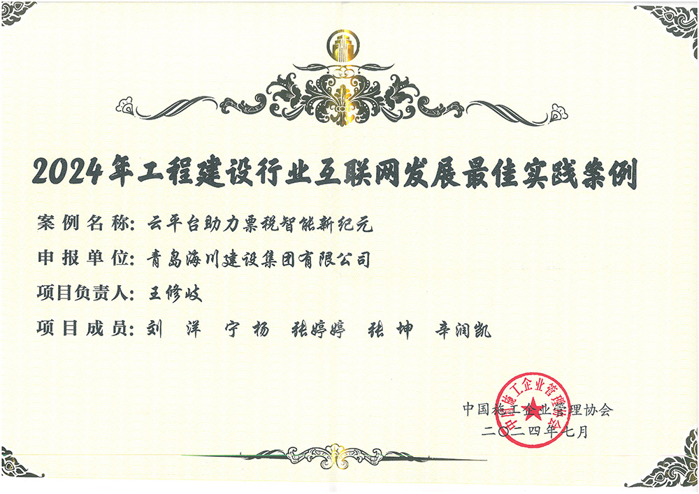 青島海川建設(shè)集團榮獲中施企協(xié) “全國工程建設(shè)行業(yè)互聯(lián)網(wǎng)發(fā)展最佳實踐案例”2024-08-31近日,由中國施工企業(yè)管理協(xié)會主辦的中國第九屆工程建設(shè)行業(yè)互聯(lián)網(wǎng)大會在成都舉行,本次大會以“數(shù)字化賦能新質(zhì)生產(chǎn)力發(fā)展”為主題,吸引了來自全國工程建設(shè)、互聯(lián)網(wǎng)、數(shù)字化、智能化等領(lǐng)域?qū)<摇⑵髽I(yè)高管及代表超4000人參加。會上,中國施工管理企業(yè)協(xié)會發(fā)布了2024年工程建設(shè)行業(yè)互... -