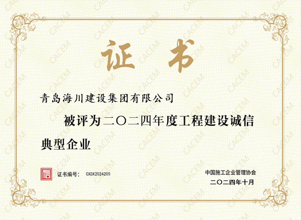 青島海川建設(shè)集團榮獲工程建設(shè)誠信典型企業(yè)等多項榮譽2024-10-31為全面推進(jìn)工程建設(shè)行業(yè)信用體系建設(shè),樹立誠信建造品牌,營造良好信用環(huán)境,中國施工企業(yè)管理協(xié)會繼續(xù)開展本年度工程建設(shè)誠信典型企業(yè)評估工作,經(jīng)企業(yè)申報、評選、公示、公布,青島海川建設(shè)集團有限公司成功獲評工程建設(shè)誠信典型企業(yè)榮譽,連續(xù)5年榮獲此殊榮。在中國施工企業(yè)管理協(xié)會開展... -