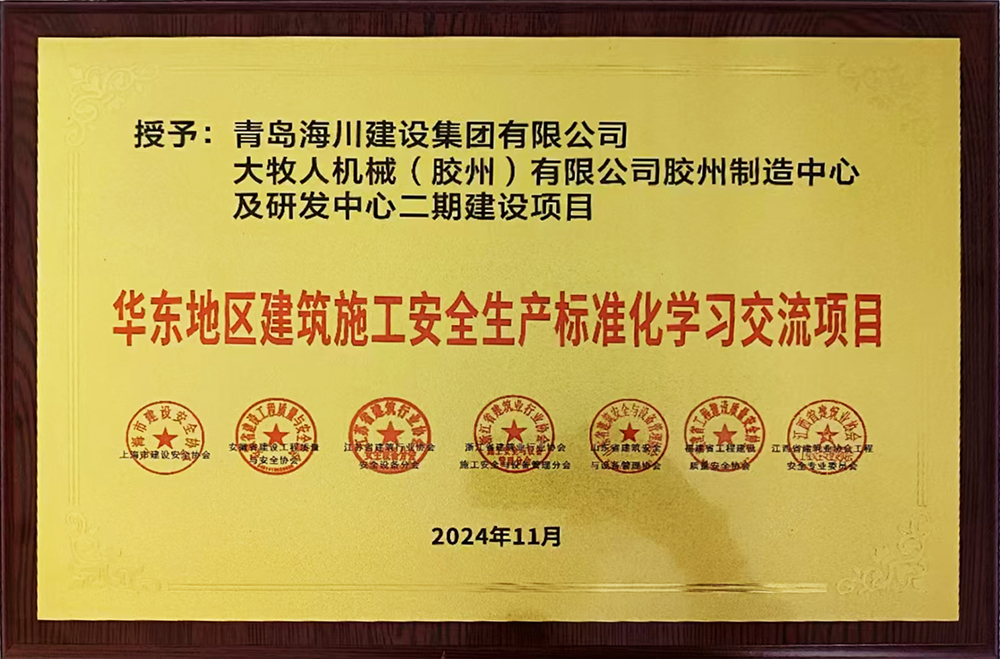 青島海川建設(shè)承建的大牧人項目獲評“華東地區(qū)建筑施工安全生產(chǎn)標(biāo)準(zhǔn)化學(xué)習(xí)交流項目”2024-11-2911月29日,華東地區(qū)建筑安全聯(lián)席會公布了2024年度華東六省一市建筑施工安全生產(chǎn)標(biāo)準(zhǔn)化工地學(xué)習(xí)交流活動名單,青島海川建設(shè)集團承建的大牧人機械(膠州)有限公司膠州制造中心及研發(fā)中心二期建設(shè)項目工程獲評“華東地區(qū)建筑施工安全生產(chǎn)標(biāo)準(zhǔn)化學(xué)習(xí)交流項目”。該獎項由華東地區(qū)各省、... -